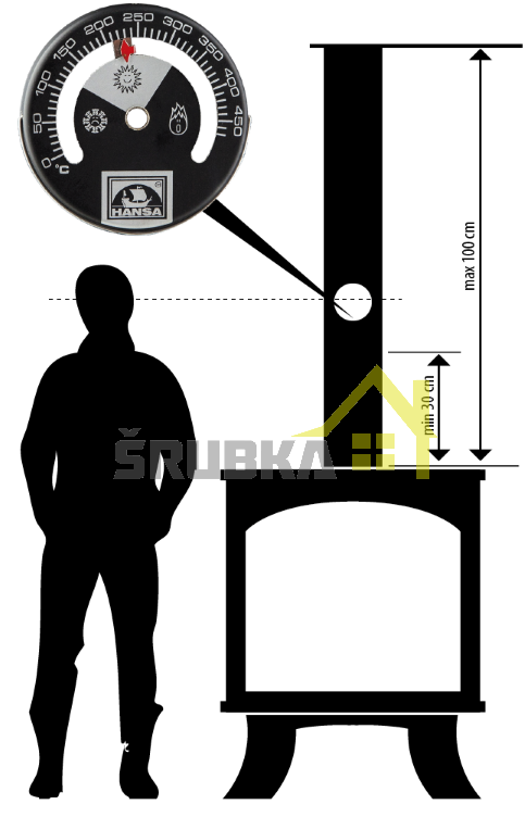 Magnetický teplomer spalín pre kachle, piecky, kotle